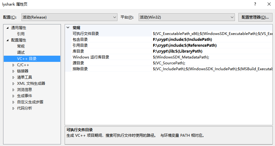 使用该库也很容易,只需要包含Include与Lib库文件即可,如下图所示配置;